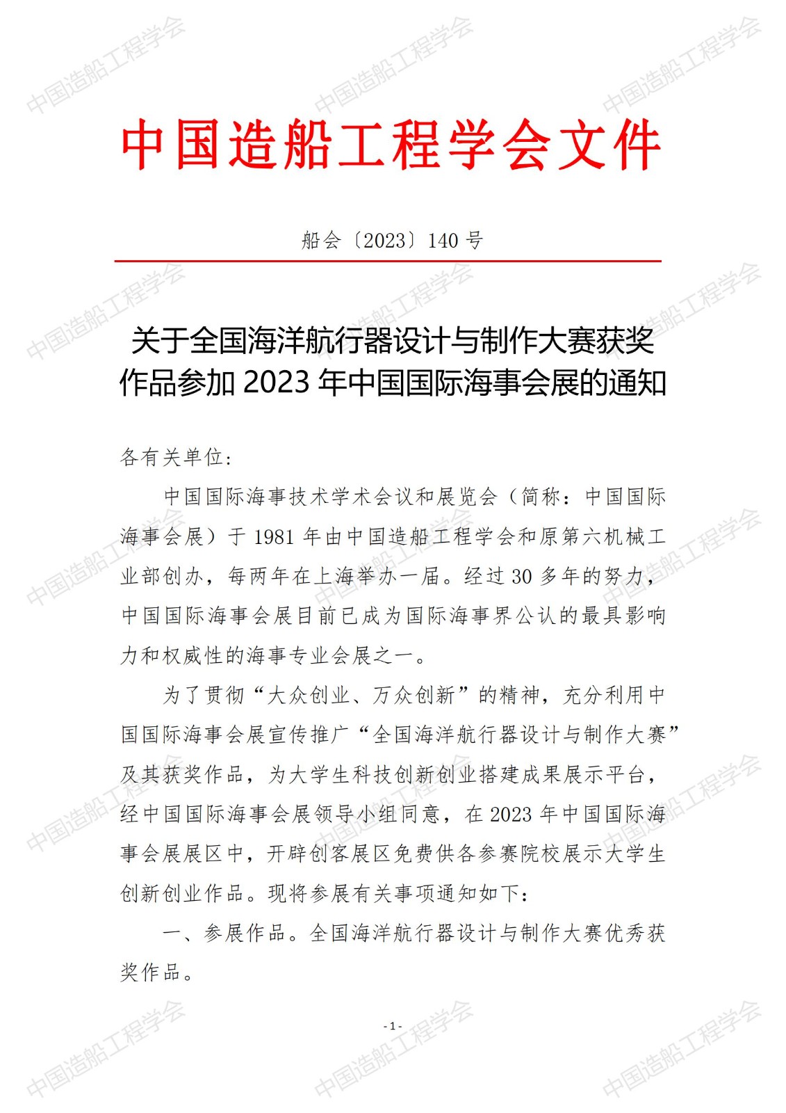關(guān)于全國海洋航行器設(shè)計(jì)與制作大賽獲獎作品參加 2023 年中國國際海事會展的通知